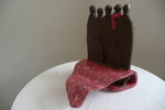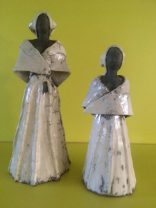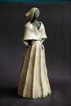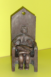 2014'Mantelzorgster'. Vrouwfiguur op troon gezten met mantel op schoot.